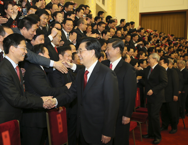 ????在熱烈的掌聲中,胡錦濤、習近平發(fā)表了重要講話。