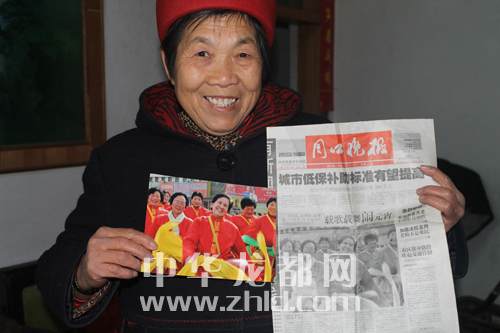 ????“當(dāng)?shù)诙熘牢覀冄年犐蠄蠹埩?,大家別提多高興了?!弊鳛檠年犼犻L,李愛真每次拿起保存完好的當(dāng)天報紙時,都像回到了十年前。指著照片,李愛真介紹,最左邊的是腰鼓隊隊員王春華,往右依次是劉鳳云、劉玉真、高翠蘭、蘇桂芝和她?!案叽涮m得知上報紙后,還托人要來了底片特意加洗了照片保存了下來”。