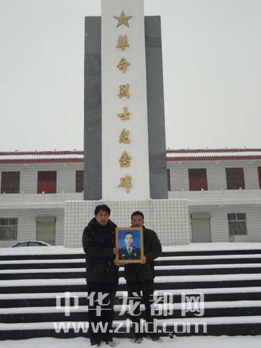 鄭春光的家人抱著其遺像在淮陽(yáng)縣烈士陵園