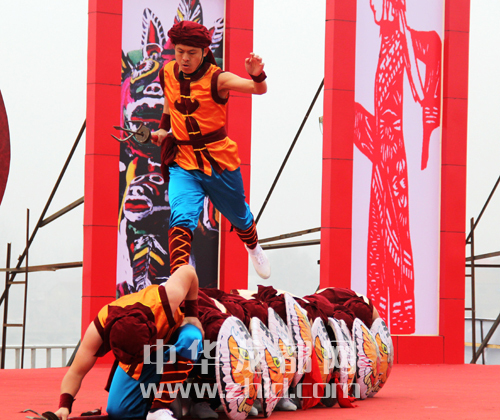 江西的盾牌舞表演。