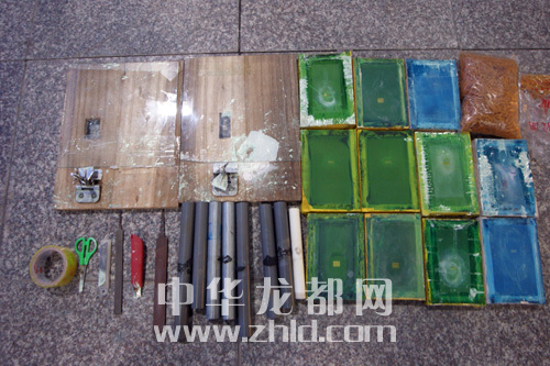 ????同年11月5日,在獲知許某、韓某夫婦再次從廣東購(gòu)得假幣,并已伙同孟某完成防偽加工工序的準(zhǔn)確信息后,為避免假幣流入市場(chǎng),周口公安機(jī)關(guān)經(jīng)偵部門“收網(wǎng)”。11月6日,市公安局犯罪偵查支隊(duì)經(jīng)偵三個(gè)大隊(duì)全體民警在文昌分局許灣中隊(duì)、沈丘縣公安局經(jīng)偵大隊(duì)的協(xié)同配合下,直撲犯罪窩點(diǎn)。于當(dāng)天下午2時(shí)許,在沈丘縣抓獲犯罪嫌疑人韓某、孟某及其他涉案人員,并在孟某家中當(dāng)場(chǎng)繳獲假幣數(shù)百萬元(圖一),假人民幣加工模具12套(圖二)。
