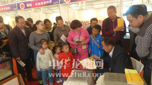 ????10月16日至19日,第二屆中原(鶴壁)文化產(chǎn)業(yè)博覽交易會在鶴壁市會展中心舉行,周口華威民俗文化博物苑參展有歷代石刻拓片、漢畫拓片、漢畫冊頁、漢畫長卷等多種文創(chuàng)產(chǎn)品,并現(xiàn)場演示了拓片制作工藝,受到與會人員的歡迎。圖為參會情景。 記者 劉彥章 攝
