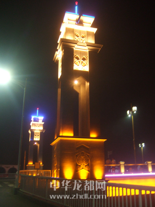 ????沙潁河周口市區(qū)段的八一大道橋是個很好的景點。一是設計得好,中外結合,寬闊、美觀、大方,橋欄桿、橋頭堡、彩燈獨具一格,給人以美的享受;二是施工質量好,橋體、橋面、人行道、欄桿至今未出現(xiàn)一點問題,群眾很滿意;三是保養(yǎng)得好,開放至今一直保持著良好的風貌。傍晚華燈齊放,橋上路燈一字兒排開,欄桿彩燈五光十色,加上橋體的彩色射光,遠處望著河中倒影,仿佛又現(xiàn)出一座金光閃閃的大橋,使人留連忘返,是游覽的好去處。筆者認為:八一大道橋是周口市區(qū)最好的橋梁,也是最美的景點之一,真可謂“彩虹臥波”。推薦人:王羨榮