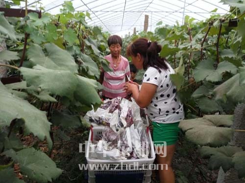 ????在農(nóng)場(chǎng)的葡萄大棚里,一串串葡萄被套上了塑料袋,形成了五顏六色的奇特景觀,社員正忙著采摘裝箱(如圖)。農(nóng)場(chǎng)技術(shù)人員介紹:“給葡萄套袋,可以明顯改善果實(shí)品質(zhì),保護(hù)果實(shí)不受病蟲(chóng)害侵襲,減少農(nóng)藥殘留,防鳥(niǎo)啄食,改善果實(shí)外觀,提高果品檔次,是當(dāng)前生產(chǎn)高品質(zhì)、無(wú)公害葡萄的有效措施?!?/p>