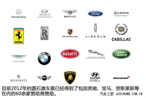??? 在贊助商方面,2012年的圓石灘車展到目前為止已經(jīng)有包括勞力士、蘭博基尼、寶馬、奔馳、法拉利等品牌在內(nèi)的60余家贊助商提供贊助,在現(xiàn)場你會看到很多這些品牌的廣告,當(dāng)然這些品牌的廣告及贊助費(fèi)的部分會被主辦方捐獻(xiàn)給慈善機(jī)構(gòu)。
