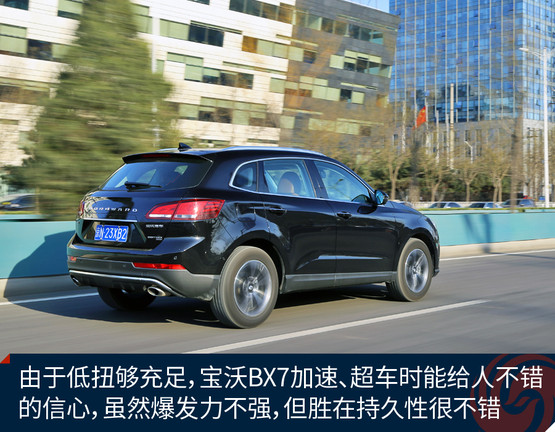 動力方面寶沃BX7擁有一臺2.0T渦輪增壓直噴發(fā)動機(jī),目前在售的均為高功率版本,擁有165千瓦的最大功率和300牛頓·米的峰值扭矩,這臺2.0T發(fā)動機(jī)是寶沃聯(lián)合德國FEV公司共同研發(fā),最大功率數(shù)據(jù)可觀,但峰值扭矩因?yàn)樽兯倨髂艹惺茏畲笈ぞ氐南拗票辉O(shè)定得略微保守,可見這還并非這臺發(fā)動機(jī)的全部潛力。令人欣慰的是,這臺2.0T發(fā)動機(jī)峰值扭矩在1500rpm即可輸出,這個優(yōu)點(diǎn)讓它在低轉(zhuǎn)速區(qū)即可有充沛的牽引力,駕駛起來顯得更加輕松,超車的時候信心十足。