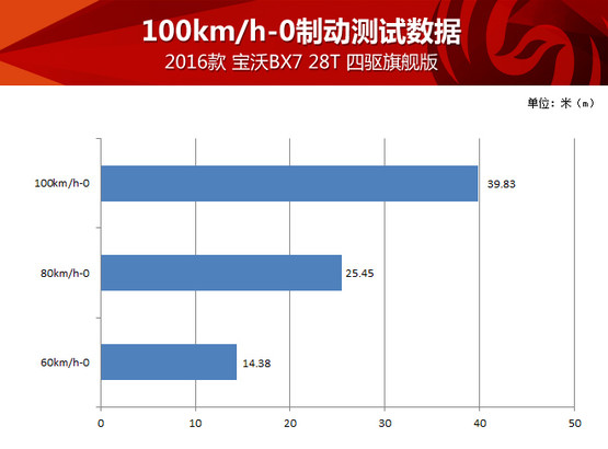 加速過后就要減速,寶沃BX7的制動系統(tǒng)在測試中經(jīng)受住考驗(yàn),不到39米的成績對于一臺SUV而言已經(jīng)算是很不錯,而且多次測試并未出現(xiàn)制動力有衰減的現(xiàn)象。