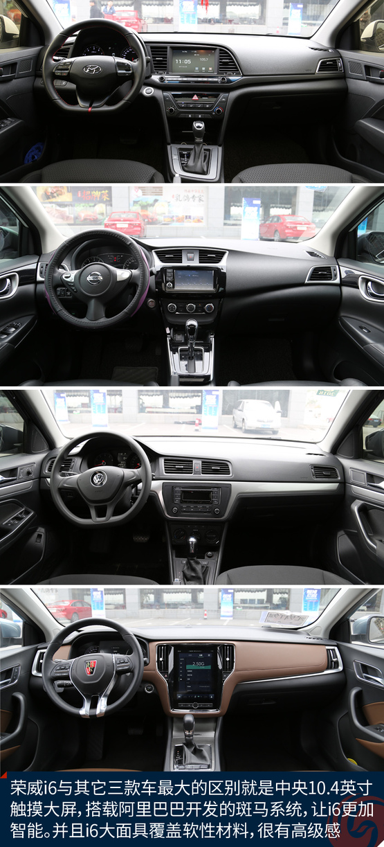 榮威i6內(nèi)飾軟包比例達(dá)到80%,能摸到的地方幾乎都采用了軟性材料,舒適溫馨的車(chē)內(nèi)氛圍也是家庭用戶非??粗氐?。榮威i6內(nèi)飾最大亮點(diǎn)在于10.4英寸的中控屏和和7英寸液晶儀表盤(pán),讓科技感和豪華感超越了另外三款合資車(chē)型。相比榮威i6來(lái)說(shuō),它們的內(nèi)飾過(guò)于老套了。同樣i6的做工也絲毫沒(méi)有遜色于對(duì)手,在內(nèi)飾有機(jī)物揮發(fā)指標(biāo)上遠(yuǎn)低于國(guó)家車(chē)內(nèi)空氣質(zhì)量標(biāo)準(zhǔn)水平。