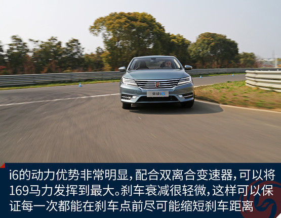 在動(dòng)力方面,榮威i6搭載了上汽“藍(lán)芯”SGE 20T發(fā)動(dòng)機(jī),采用缸內(nèi)中置直噴渦輪增壓、高效氣門(mén)配氣機(jī)構(gòu)等國(guó)際領(lǐng)先技術(shù),配合TST 7速雙離合變速器,榮威i6最大功率169馬力,比朗逸、軒逸和領(lǐng)動(dòng)分別高出了59馬力、43馬力、39馬力。而實(shí)際測(cè)試中也證實(shí)了這一點(diǎn),榮威i6在加速和剎車(chē)方面確實(shí)領(lǐng)先于競(jìng)品車(chē)型。7.88秒的0-100km/h的加速成績(jī)確實(shí)讓人大吃一驚,榮威i6表現(xiàn)出了極高的運(yùn)動(dòng)化調(diào)教。剎車(chē)方面,榮威i6也表現(xiàn)相當(dāng)出色,36.59米的剎車(chē)距離,可以跟一些性能車(chē)相提并論。300mm的通風(fēng)剎車(chē)片功不可沒(méi),整個(gè)制動(dòng)過(guò)程有力平穩(wěn),車(chē)身懸掛對(duì)于點(diǎn)頭的抑制也很到位。