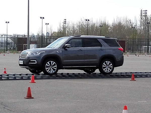 第三個項目是緊急避讓,體驗車輛抓地性;接下來的側面斜坡項目長安CS95順利通過,車身并未有異響。