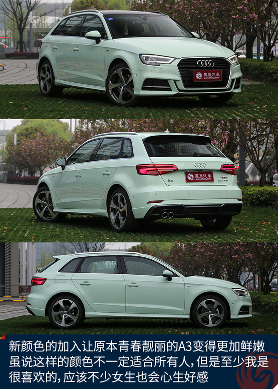 鳳凰汽車·搶先試駕?從某種程度上來說,我得承認(rèn)我是一個(gè)外貌協(xié)會,或者說必須要有所取舍的時(shí)候,好不好看一定會成為先決條件。你也許覺得我有些膚淺,說好的內(nèi)在美呢?可是別光說我,捫心自問,你敢說自己不是外貌協(xié)會嗎?所以在一切美麗的事物面前,喜愛之情都是難以控制的,比如當(dāng)我第一次看到喀納斯綠的新款奧迪A3?Sportback。