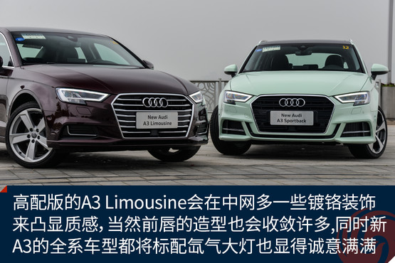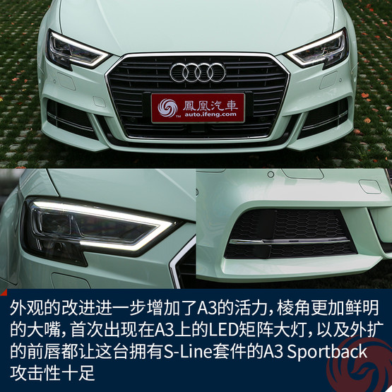 新顏色的加入讓原本青春靚麗的A3變得更加鮮嫩,雖說這樣的顏色不一定適合所有人,但是至少我是很喜歡的,應(yīng)該不少女生也會心生好感。而外觀的改進(jìn)進(jìn)一步增加了A3的活力,棱角更加鮮明的大嘴,首次出現(xiàn)在A3上的LED矩陣大燈,以及外擴(kuò)的前唇都讓這臺擁有S-Line套件的A3 Sportback攻擊性十足,同時(shí)全系都將標(biāo)配氙氣大燈也是誠意滿滿。而高配置的A3 Limousine會在中網(wǎng)多一些鍍鉻裝飾來凸顯質(zhì)感,當(dāng)然前唇的造型也會收斂許多。