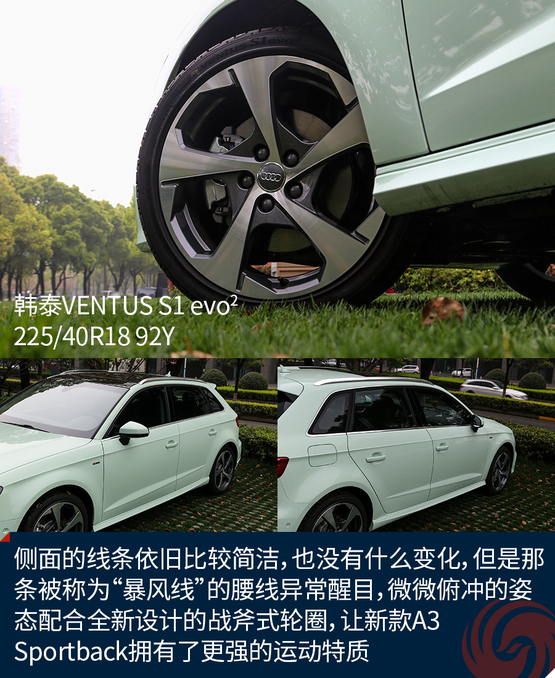 側(cè)面的線條依舊比較簡潔,也沒有什么變化,但是那條被稱為“暴風(fēng)線”的腰線異常醒目,微微俯沖的姿態(tài)配合全新設(shè)計(jì)的戰(zhàn)斧式輪圈,讓新款A(yù)3 Sportback擁有了更強(qiáng)的運(yùn)動(dòng)特質(zhì)。