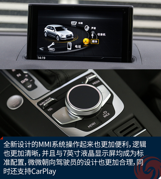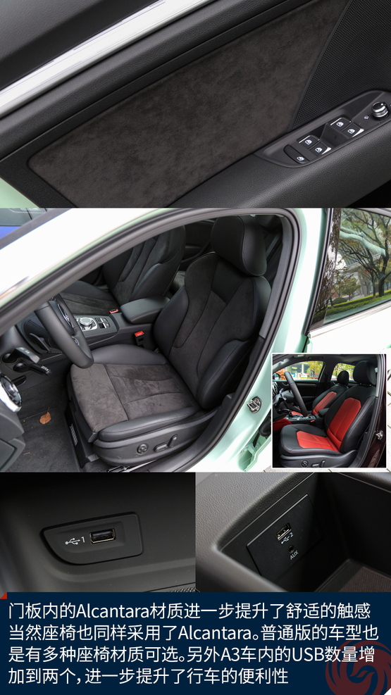 相比較外觀的改變,內(nèi)飾的變化就要少了一些,最直觀的變化莫過于全新設(shè)計(jì)的真皮方向盤,不僅好看也十分的好用,發(fā)光的迎賓踏板進(jìn)一步增加了車輛的高級感,中控面板上的鋁合金材質(zhì)的裝飾條質(zhì)感出色,不僅如此,還有多種樣式和材質(zhì)可選;而門板內(nèi)的Alcantara材質(zhì)進(jìn)一步提升了舒適的觸感,當(dāng)然座椅也同樣采用了Alcantara。另外新增加的USB接口也進(jìn)一步增加了行車的便利性,這也讓A3車內(nèi)的USB數(shù)量增加到兩個(gè)。同時(shí),全新設(shè)計(jì)的MMI系統(tǒng)操作起來也更加便利,邏輯也更加清晰,并且與7英寸液晶顯示屏均成為標(biāo)準(zhǔn)配置,微微朝向駕駛員的設(shè)計(jì)也更加合理,同時(shí)還支持CarPlay。