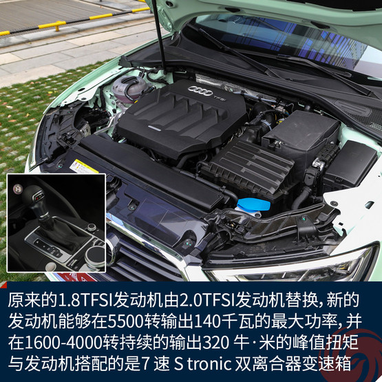 動(dòng)力的改變也許是此次另一個(gè)升級的重點(diǎn),除了1.4TFSI發(fā)動(dòng)機(jī),原來的1.8TFSI發(fā)動(dòng)機(jī)將由2.0TFSI發(fā)動(dòng)機(jī)替換,新的發(fā)動(dòng)機(jī)能夠在5500轉(zhuǎn)輸出最大功率為140千瓦,并在1600-4000轉(zhuǎn)持續(xù)的輸出320 ?!っ椎姆逯蹬ぞ?。與兩臺發(fā)動(dòng)機(jī)搭配的7 速 S tronic 雙離合器變速箱。憑借動(dòng)力的優(yōu)勢,新A3 40TFSI車型的百公里加速時(shí)間縮短了0.1秒,但是油耗會相應(yīng)的有所減少。