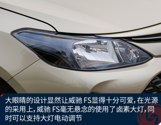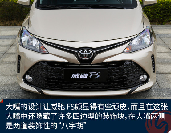 從外觀上我們也不難看出,威馳 FS與威馳一脈相承,正面看,甚至看不出兩車的差別,豐田最新的keen look設計讓車輛呈現(xiàn)出一種完全不同的年輕姿態(tài),當然這也是目前豐田整個車系的主要設計語言,就是要讓車輛更顯年輕運動。大嘴的設計讓威馳 FS頗顯得有些頑皮,而且在這張大嘴中還隱藏了許多四邊型的裝飾塊,在大嘴兩側(cè)是兩道裝飾性的“八字胡”,除此之外是一雙大大的眼睛,這一副調(diào)皮可愛的模樣,相信不少年輕人都會喜歡。