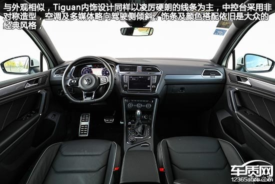 與外觀相似,Tiguan內(nèi)飾設(shè)計(jì)同樣以凌厲硬朗的線條為主,中控臺(tái)采用非對(duì)稱造型,空調(diào)及多媒體略向駕駛側(cè)傾斜,飾條及顏色搭配依舊是大眾的經(jīng)典風(fēng)格,雖然大面積覆蓋軟性搪塑材質(zhì),但手感稍硬,不過接縫相當(dāng)緊實(shí),足以展現(xiàn)進(jìn)口車風(fēng)范。