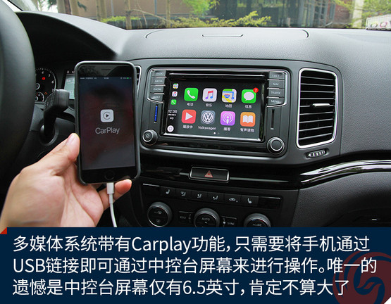 內(nèi)飾方面,夏朗仍然傳承著大眾品牌的經(jīng)典設計風格,基本不用分辨就知道這是一款大眾汽車。中央的多媒體系統(tǒng)功能豐富,并且?guī)в蠧arplay功能,只需要將手機通過USB鏈接即可通過中控臺屏幕來進行操作。唯一的遺憾是,夏朗的中控臺屏幕僅有6.5英寸,在現(xiàn)在看來肯定不算大了。