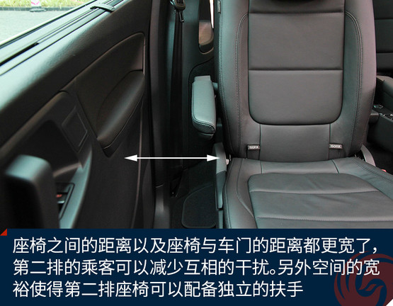 當然作為這次新增的車款,我們還是要重點介紹一下夏朗6座版相對于7座版的區(qū)別。首先要說明的是夏朗7座版的第二排座椅本來也是提供了三個獨立的座椅,相比40/60分割的座椅已經(jīng)方便了不少,而這次提供的6座版本最大目的就是提升了第二排乘客的舒適性。