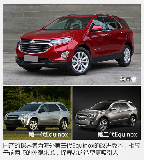 探界者其實(shí)并非科帕奇的換代車型,而是完完全全的一款全新車型,國產(chǎn)探界者也并不是第一次出現(xiàn)在世人面前;探界者早在北美市場供應(yīng),名為Equinox的它是通用汽車在北美市場最受歡迎的車型之一。這次引入國內(nèi)的探界者已經(jīng)是它的第三代車型,而第二代在整個(gè)北美市場位列全部車型銷量榜的第15位,可見其可靠的實(shí)用性和較高的性價(jià)比受到了多大的認(rèn)可。