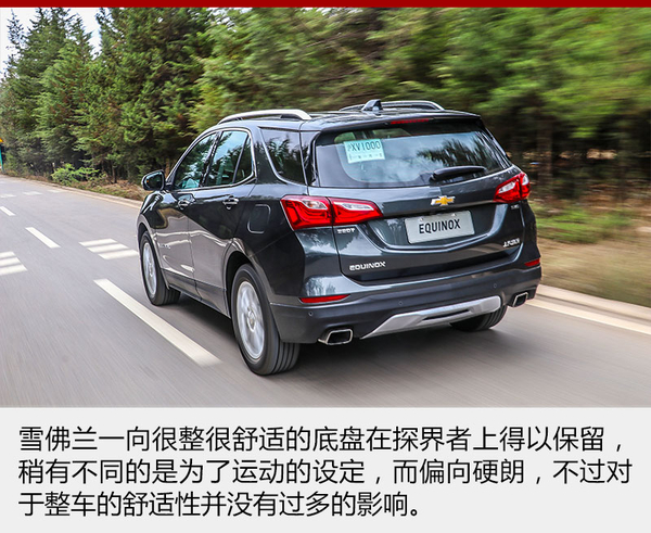 探界者的底盤受到雪佛蘭運(yùn)動傾向的影響,被調(diào)校的有些偏硬,這樣對于車身側(cè)傾的抑制就非常到位,面對路面上連續(xù)的起伏,緊致的懸架也帶來很強(qiáng)的整體感。但是當(dāng)面對較大的顛簸或者減速帶一類的時(shí)候,車身就會產(chǎn)生彈跳的感覺,而且懸架的回彈稍有延遲,總有一次小幅度的二次彈跳,稍稍影響了舒適性。