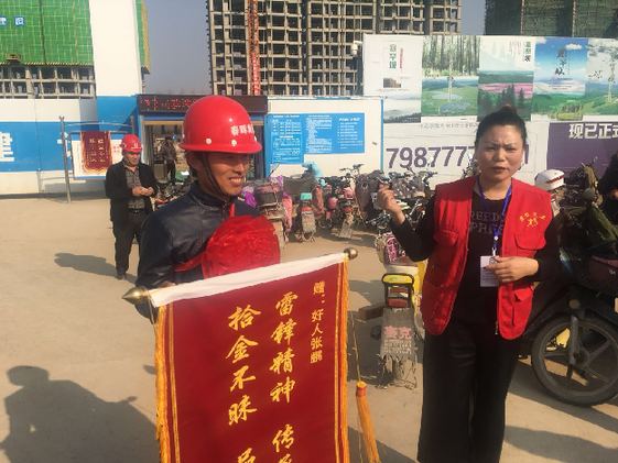 11月9日上午,市民符女士與朋友一起來到天明城名仕公館項(xiàng)目部,向拾到其錢包的鄲城小伙張鵬表示感謝。