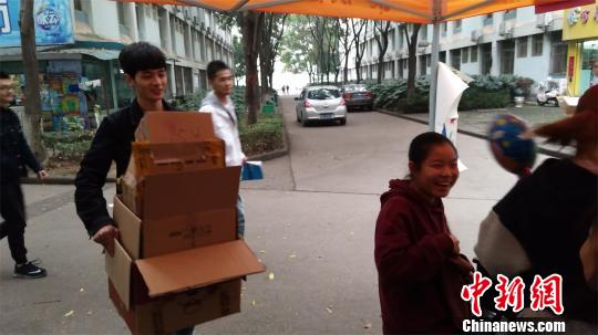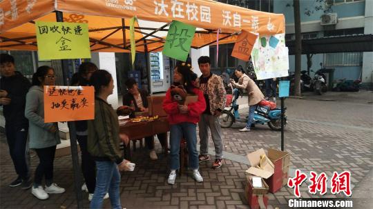 ????為調(diào)動學生的參與度,該活動實施過程中還設(shè)置了抽獎環(huán)節(jié)。只要拿著快遞盒子前往站點便可獲得抽獎機會,獎品大到毛絨熊,小至糖果等。