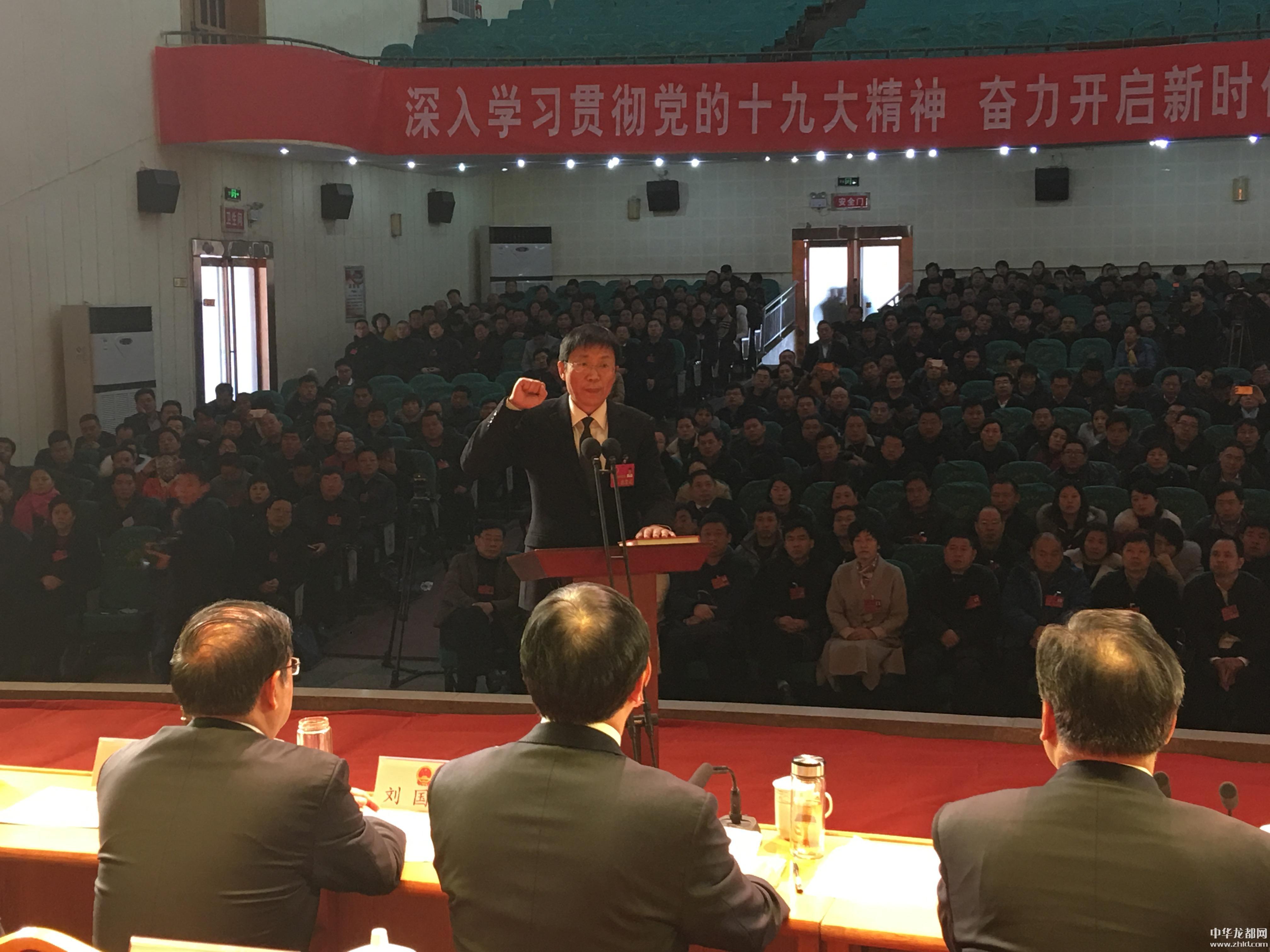 “我宣誓:忠于中華人民共和國憲法,維護憲法權(quán)威,履行法定職責(zé),忠于祖國、忠于人民,恪盡職守、廉潔奉公,接受人民監(jiān)督,為建設(shè)富強、民主、文明、和諧的社會主義國家努力奮斗!”劉孟連左手撫按《憲法》,右手握拳高舉,莊嚴宣誓。全體代表監(jiān)誓。