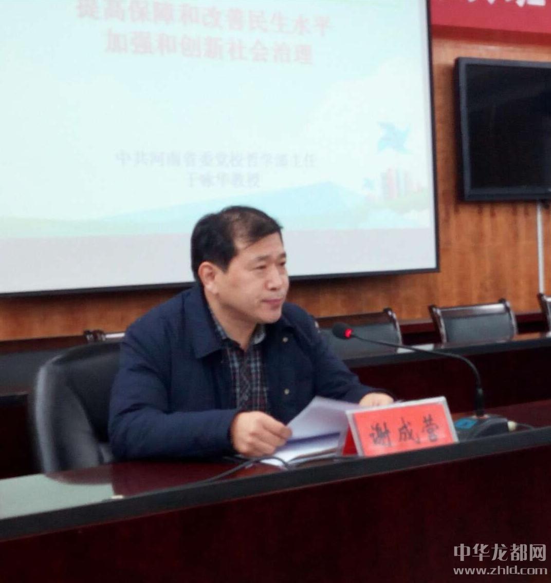 于詠華教授是省委黨校碩士生導(dǎo)師、教授,又是哲學(xué)教研部主任,研究領(lǐng)域重點(diǎn)是馬克思主義哲學(xué),中國傳統(tǒng)文化,她主持完成國家社科基金項(xiàng)目3項(xiàng),省部級課題10多項(xiàng),發(fā)表論文160余篇。同時(shí)她還是河南省委講師團(tuán)成員,河南儒學(xué)文化促進(jìn)會講師團(tuán)成員,多次被評為優(yōu)秀宣講隊(duì)員。當(dāng)晚,她運(yùn)用多媒體以《提高保障和改善民生水平 加強(qiáng)和創(chuàng)新社會治理》為題,從落實(shí)十九大精神、把“提高保障和改善民生水平 加強(qiáng)和創(chuàng)新社會治理”的任務(wù)落到實(shí)處、黨的十九大謀劃新時(shí)代社會建設(shè)的邏輯起點(diǎn)、解決新時(shí)代社會主要矛盾、不斷促進(jìn)社會公平正義、提升人民“獲得感、幸福感、安全感”等幾個(gè)方面,用生動樸實(shí)、通俗易懂的語言,旁征博引、深入淺出地對黨的十九大精神作了詳細(xì)闡述,既有理論高度又有思想深度。