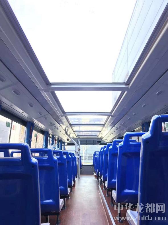 記者順著步梯來(lái)到第二層,視野頓時(shí)開闊起來(lái)。原來(lái)該層頂部設(shè)計(jì)有6塊全景天窗,乘客坐在第二層不但不會(huì)有壓抑的感覺,反而會(huì)視野開闊,便于游覽周口街景。記者注意到,在全景天窗下面有遮陽(yáng)板,乘客可以用來(lái)遮擋陽(yáng)光。