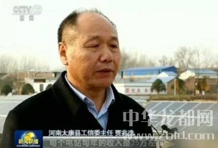“塘上發(fā)電、塘下養(yǎng)魚。在河南太康縣劉寨村,原來廢棄的水塘不僅重新養(yǎng)上了魚,還又建了光伏太陽能發(fā)電設(shè)備。貧困戶劉宗林告訴記者,現(xiàn)在不僅用電不花錢,每年還有一定的分紅。”當(dāng)晚的新聞聯(lián)播畫面中,開始就提到了太康縣老冢鎮(zhèn)劉寨村的發(fā)電項(xiàng)目。在長達(dá)1分41秒的報道中,介紹太康縣的內(nèi)容占了1分多鐘。