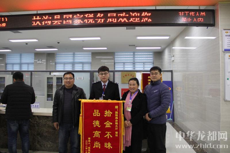 中華龍都網(wǎng)訊(周口報(bào)業(yè)全媒體記者 謝永靜)1月22日剛剛上班,陳秋旺和同事手拿“拾金不昧品德高尚”的錦旗來(lái)到扶溝縣國(guó)稅局辦稅服務(wù)廳,專(zhuān)程向拾金不昧的工作人員常征致謝。