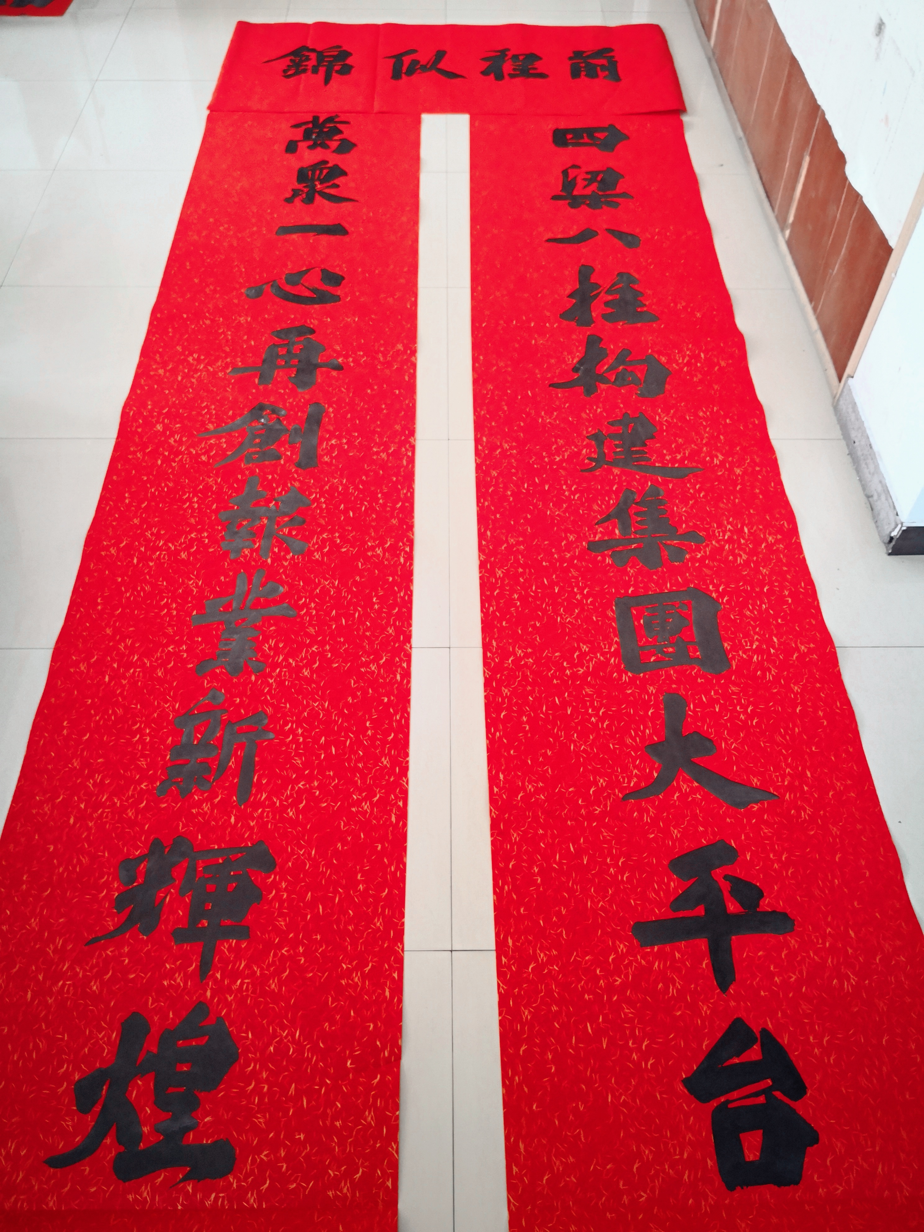 中華龍都網(wǎng)訊(周口報業(yè)全媒體記者 王晨)無聯(lián)不成春,有聯(lián)春更濃。2月3日,青年書法家邢懷章潑墨揮毫,為周口報業(yè)傳媒集團書寫巨幅春聯(lián),字大如斗,給周口報人送去新春祝福。