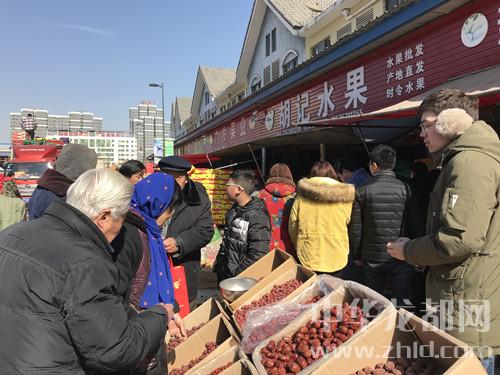 從華耀城出來,記者來到太昊路上的周口黃淮農產品大市場,前來置辦年貨的市民絡繹不絕(圖三、圖四)。市場工作人員介紹:“9點以前,大多是來買蔬菜、海鮮的?,F(xiàn)在11點了,水果批發(fā)區(qū)這會兒正熱鬧?!?/p>