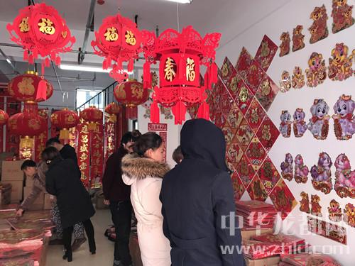 近日,華耀城A區(qū)精品市場內出現(xiàn)了一條“紅街”,因為這條街上的門店賣的是對聯(lián)、窗花、紅燭等紅色的商品?!芭l(fā)對聯(lián)就年前一個月的好生意,這幾天忙不過來,家里的親戚都來幫忙了!”經營對聯(lián)批發(fā)生意的李陽說。他的店里掛著各式各樣的對聯(lián)、年畫(圖二),其中一些帶有小狗元素的裝飾品銷量特別好。