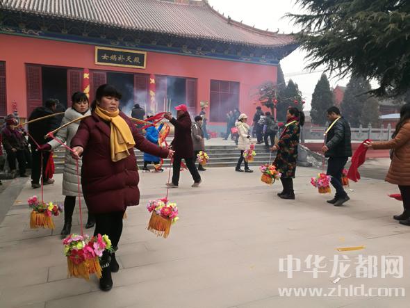 耿寶山所說的“歷久彌新”很容易就在記者采訪當(dāng)天得到了證明:3支經(jīng)挑舞隊伍在女媧城里往來穿梭,不僅表演內(nèi)容多樣、富于創(chuàng)新,還都用上了現(xiàn)代化音響設(shè)備。除了經(jīng)挑舞,女媧陵前還有竹馬旱船表演、墜子書表演、經(jīng)歌表演等,都與盤古女媧傳說相關(guān),引人入勝。