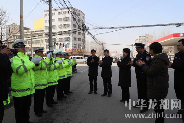 一路慰問一路播撒黨的溫暖。在鄲城縣城科技大道與人民路口,趙素萍一行專門下車慰問了一線交警?!袄洳焕洌啃』镒?。這衣服暖和不?”趙素萍用手摸了摸一位交警的值勤服問?!安焕洌@是俺縣里才配發(fā)的保暖服,防雪防風防雨。再說了,省領導來慰問,俺心里更暖和。”交警的機靈回答,把大家逗得哈哈大笑。趙素萍說:“你們不畏嚴寒的辛勤付出保障了城市的暢通,我代表省委、省政府向全縣民警同志們致以節(jié)日的問候,并通過你們向你們的家人表示節(jié)日的祝福,祝愿大家新春愉快,闔家幸福,身體健康?!?/p>