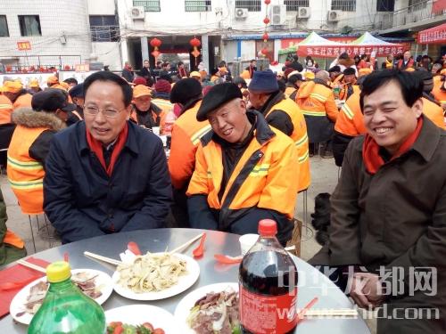 中華龍都網(wǎng)訊(周口報業(yè)全媒體記者 馬治衛(wèi))2月14日上午,太康縣“溫暖環(huán)衛(wèi)工團團圓圓過大年”大型公益活動隆重舉行。市政府副市長、市黨外知識分子聯(lián)誼會會長張廣東應邀出席并與環(huán)衛(wèi)工一起共進午餐。