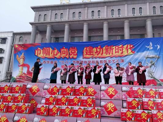 中華龍都網(wǎng)訊(周口報業(yè)全媒體記者 姬慧洋 文/圖)巾幗花開別樣紅。3月5日下午,在西華縣人民會堂前人聲鼎沸,歡歌笑語,喜氣洋洋。西華縣慶“三八”節(jié)脫貧攻堅移風(fēng)易俗文藝匯演暨巾幗脫貧行動頒獎活動正在進行。