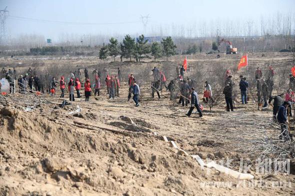 在周口森林公園植樹基地現(xiàn)場,劉繼標(biāo)、王富興、牛越麗等揮鍬鏟土填入樹坑、培實新土,各個環(huán)節(jié)大家一絲不茍、分工協(xié)作、配合默契,為周口綠色生態(tài)城市建設(shè),培植下一片片新綠。