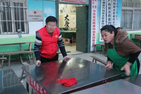 中華龍都網(wǎng)訊(周口報業(yè)全媒體記者 馬治衛(wèi) 通訊員 衡霞光)為弘揚(yáng)志愿者精神,3月24日,縣直機(jī)關(guān)工委以張玉潔書記為首的黨員志愿服務(wù)隊早早來到愛心早餐現(xiàn)場,他們擺放桌凳,盛菜、盛湯,忙的不亦樂乎,6點準(zhǔn)時開飯,張玉潔帶頭把飯菜端到環(huán)衛(wèi)工人面前,作為黨員志愿者,她身先士卒、帥先垂范、受到環(huán)衛(wèi)工人的一致稱贊。