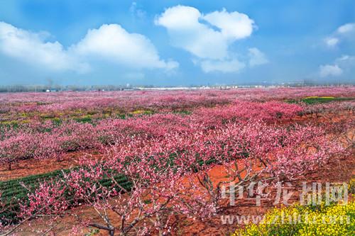 萬畝桃園位于黃橋鄉(xiāng)裴莊村。該村在改革開放前,每人每年只能收獲幾十斤糧食。實行聯(lián)產(chǎn)承包責(zé)任制后,這個村依然是“麥茬豆,豆茬麥,改茬就把紅薯栽”。到了1986年底,該村的吳新躍、吳新民、吳新生等6戶村民再也坐不住了,聚在一起商量如何改變傳統(tǒng)的種植模式。最后他們決定在自家責(zé)任田種植桃樹。3年后,6戶村民種的桃樹掛果了,當(dāng)年每戶收入超過2000元。群眾看種植桃樹有利可圖,紛紛效仿,于是以裴莊村為中心的桃樹種植面積越來越大。到2005年,全鄉(xiāng)桃樹種植面積發(fā)展到萬余畝,形成了“春季花滿園,秋季果飄香”的人間仙境。