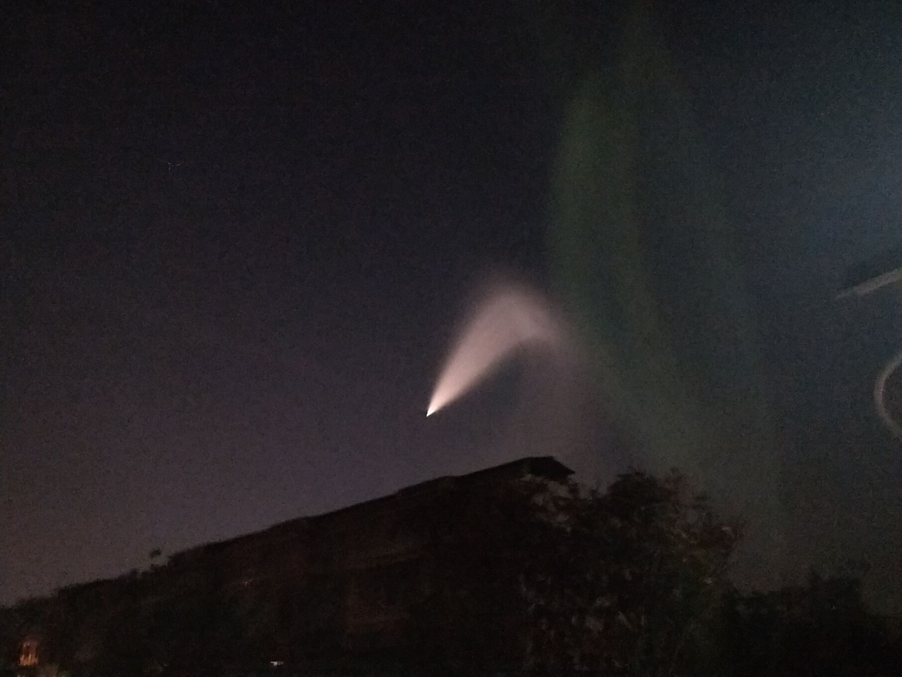 天空西北方向有一道扇形亮光,好像誰家的手電筒被扔到了天上。圖片由王建坡提供