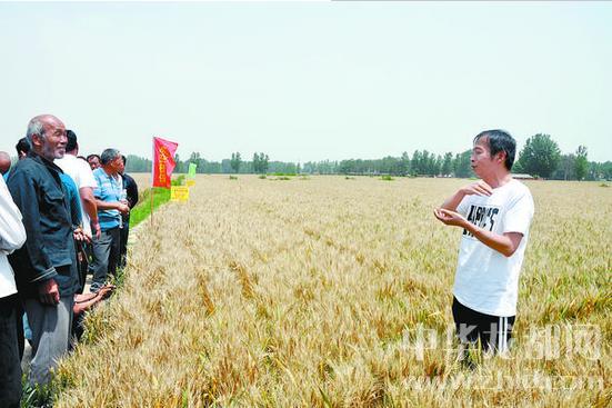 昨日下午,小麥專家在周口市天華農(nóng)業(yè)合作社魏集鎮(zhèn)小麥生產(chǎn)基地察看小麥長(zhǎng)勢(shì)。今年該合作社種植優(yōu)質(zhì)小麥2萬(wàn)多畝,預(yù)估畝產(chǎn)652公斤。記者 付永奇 攝