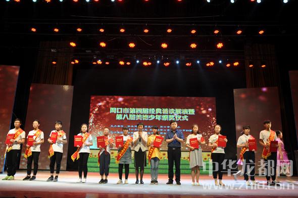 今年,經(jīng)過組織申報(bào)、層層推薦、審核公示、投票評(píng)選等程序,“市美德少年評(píng)委會(huì)”授予商水縣湯莊一中的王一帆、殷夢(mèng)丹,周口實(shí)驗(yàn)小學(xué)的盧若沖,太康縣城關(guān)中學(xué)的李思墨等11名同學(xué)“周口市美德少年”榮譽(yù)稱號(hào);授予王博、趙子怡等10名同學(xué)“周口市美德少年”提名榮譽(yù)稱號(hào)。在熱烈的掌聲中,這些身著佩帶的美德少年走向舞臺(tái),與會(huì)領(lǐng)導(dǎo)為他們頒發(fā)獎(jiǎng)杯和證書??粗峙酹?jiǎng)杯的美德少年,臺(tái)下的小學(xué)生宋佳佳悄悄告訴身邊的媽媽:“這些哥哥姐姐有的舍己救人,有的助人為樂,有的尊老愛幼,優(yōu)秀的品質(zhì)值得我們學(xué)習(xí),以后我也要從小事做起,從點(diǎn)滴做起,爭(zhēng)取成為下一屆的美德少年。”