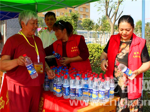 愛心助考活動現(xiàn)場,西華縣真愛醫(yī)院黨支部設立的“黨旗引領、護航高考”的大紅愛心助考條幅分外惹眼,黨員志愿者們免費為考生提供藿香正氣水、風油精、退燒藥等,并有醫(yī)護人員現(xiàn)場提供急救服務。在西華縣恒生醫(yī)院黨支部愛心助考點前,3名醫(yī)護人員正在免費為考生及家長提供風油精、清涼油、仁丹、藿香正氣水等防暑降溫藥品和急救藥品,還有擔架、120急救車輛等。西華縣北華醫(yī)藥黨支部愛心助考服務站的黨員志愿者,正在向考生免費提供防暑降溫藥、感冒發(fā)燒藥、拉肚子藥等藥品。黨員志愿者愛心企業(yè)代表宋女士說:“在高考期間,我們?yōu)榭忌凹议L免費提供礦泉水、芭蕉扇、清涼油等多項服務,除了愛心,更多的是一份責任和使命。”