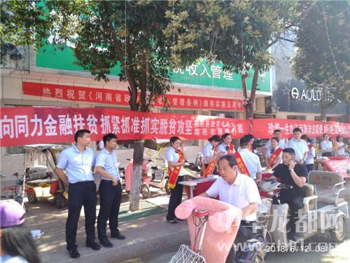 中華龍都網(wǎng)訊(周口報業(yè)全媒體記者 李瑞才 通訊員 任留兵)6月12日上午,鹿邑縣金融辦、縣公安局、縣扶貧辦及轄區(qū)各大銀行,在縣政府大門東側(cè)集中宣傳并向過往市民詳細(xì)講解小額信貸惠民政策和防范非法集資知識,希望通過政策引領(lǐng)助力廣大群眾實(shí)現(xiàn)創(chuàng)業(yè)創(chuàng)收夢想??h委書記梁建松、常務(wù)副縣長陸志杰到活動現(xiàn)場指導(dǎo)工作。各脫貧攻堅責(zé)任銀行行長及縣金融辦工作人員現(xiàn)場接受群眾咨詢,氣氛非常熱烈,取得了良好的宣傳效果。