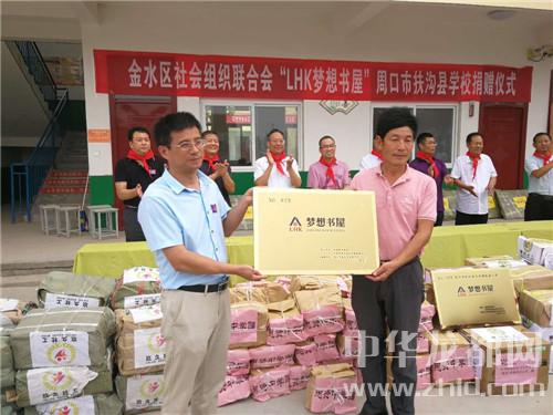 中華龍都網(wǎng)訊(周口報(bào)業(yè)全媒體記者 謝永靜)如火的驕陽(yáng)點(diǎn)亮愛(ài)的夢(mèng)想。6月28日上午,鄭州市金水區(qū)社會(huì)組織聯(lián)合會(huì)及8家會(huì)員單位“LHK夢(mèng)想書(shū)屋”扶溝縣捐贈(zèng)儀式在扶亭街道高樓小學(xué)隆重舉行。他們?yōu)榉鰷峡h6所農(nóng)村學(xué)校送來(lái)1.2萬(wàn)冊(cè)圖書(shū)、10臺(tái)教學(xué)影像設(shè)備和180套學(xué)習(xí)用品,總價(jià)值30多萬(wàn)元。