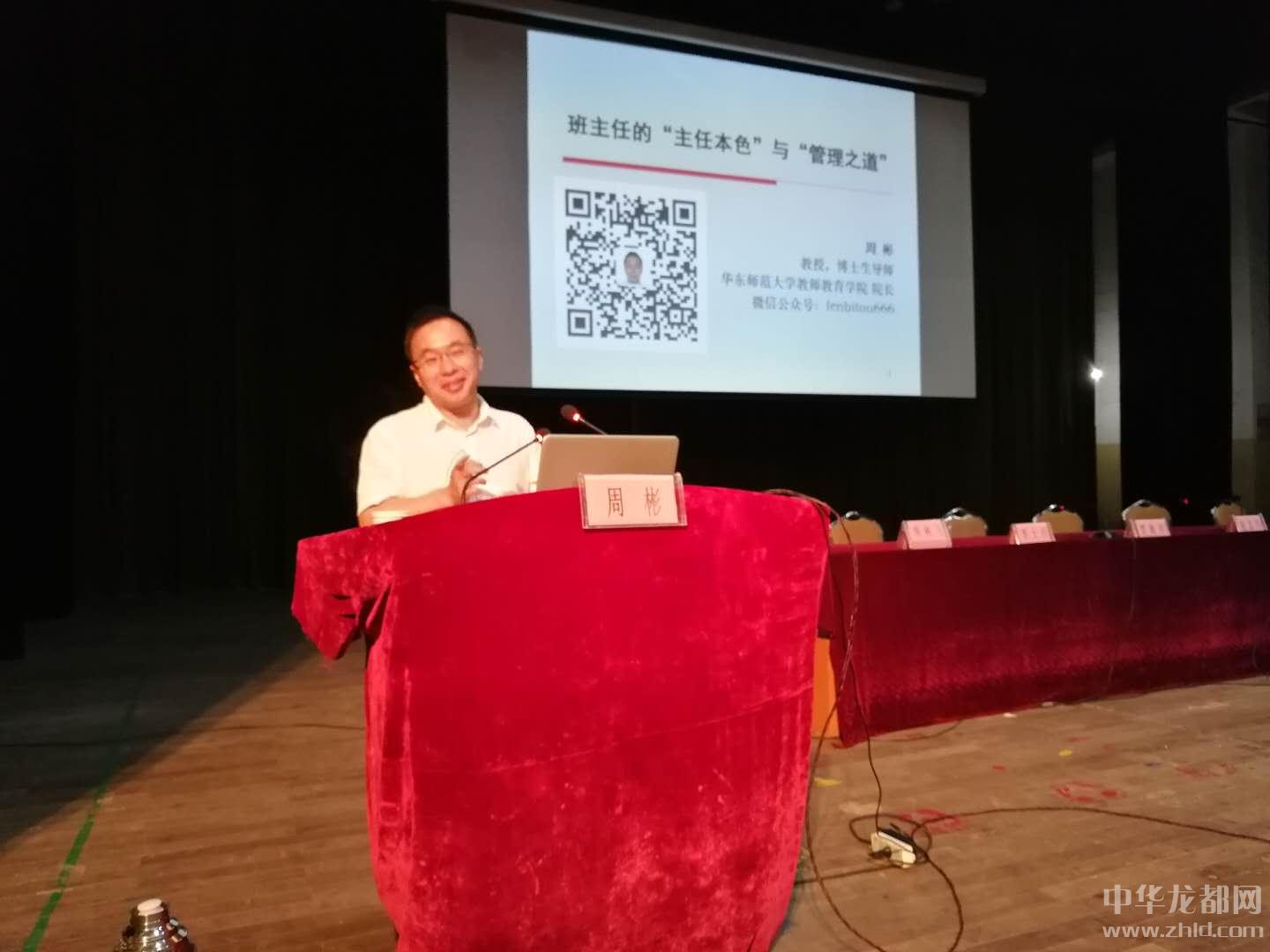 上午,簡短的開班儀式后,華東師范大學(xué)教師教育學(xué)院院長、教育學(xué)博士周彬圍繞班主任的“主任本色”與“管理之道”開講,他結(jié)合自身工作實(shí)踐經(jīng)驗(yàn)詳細(xì)闡述了班主任要處理的四種關(guān)系,即:班主任與老師的關(guān)系、班主任與學(xué)生的關(guān)系、班主任與學(xué)生家長的關(guān)系和班主任與班委的關(guān)系。他詼諧語言、淵博的學(xué)識(shí)贏得了參訓(xùn)人員的陣陣掌聲。