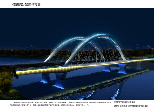 這次集中開工的14座橋梁,包含中原路跨沙潁河橋新建工程,流沙河大成路橋、洼沖溝政通路橋、洼沖溝人和路橋、流沙河騰飛路橋新建工程,以及9座老橋梁景觀改造工程,均位于城市主次干道的重要節(jié)點(diǎn),總投資5.6億元。其中,新建的中原路跨沙潁河大橋是其中最大的工程,橋長(zhǎng)837米,橋?qū)?5米,建安費(fèi)投資估算4.2億元,建成后,沙潁河南北通行更加順暢。